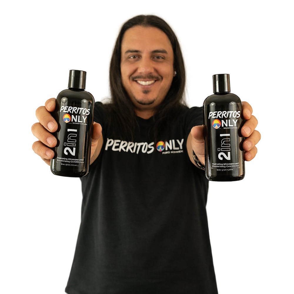 Our 2-in-1 hydrating shampoo and moisturizing conditioner is specially formulated to be sulfate-free, paraben-free, and dye-free. Transform your hair care routine, Perritos!